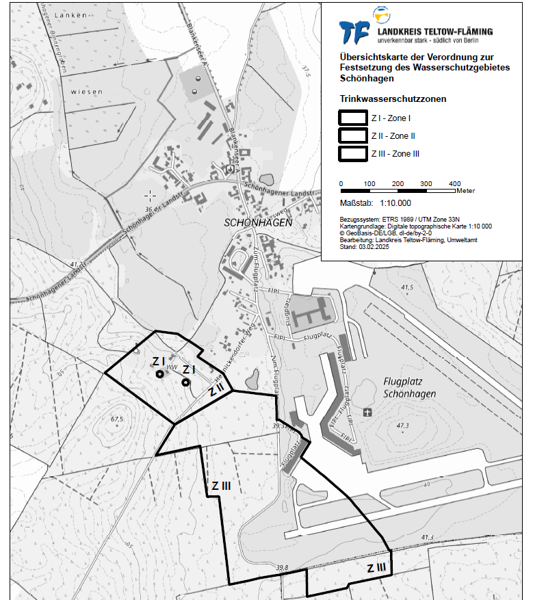 13.04.2026 Bekanntmachung der Unteren Wasserbehörde des Landkreises Teltow-Fläming13.04.2026Neufestsetzung des Wasserschutzgebietes für das Wasserwerk Schönhagen- Auslegung der Unterlagen vom 21.04. bis einschließlich 20.05.2026 -Mehr lesen
